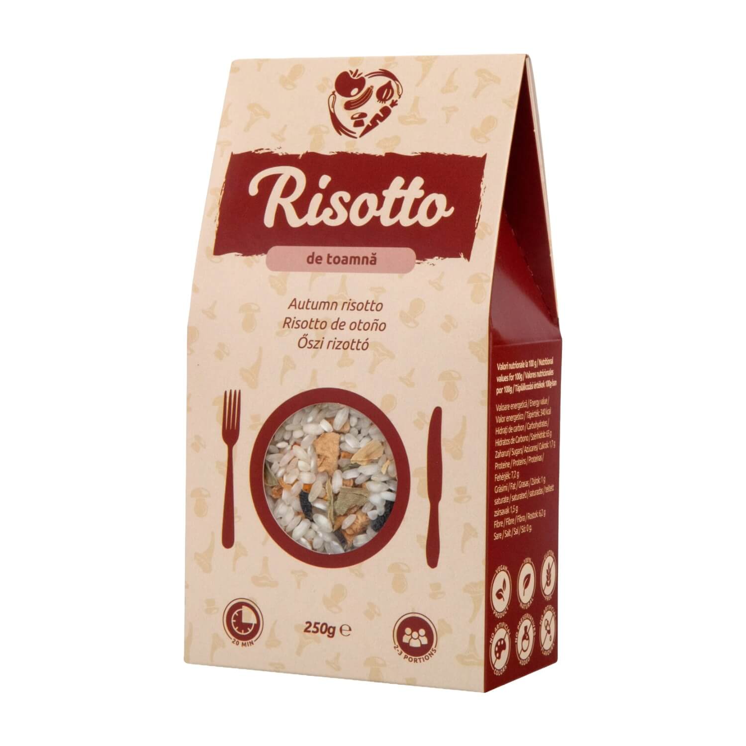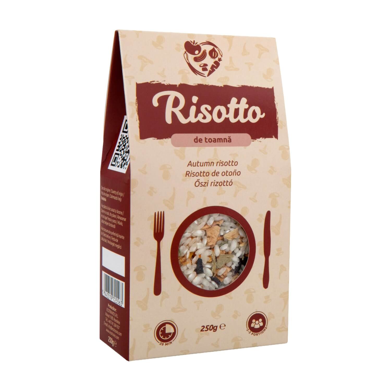 Ecotravio's Autumn risotto mix brings together the rich, earthy flavours of the forest and garden in one perfectly balanced blend. Featuring wild porcini mushrooms, sweet pumpkin, onion, aubergine and leek, it captures the essence of the harvest season in Romania.